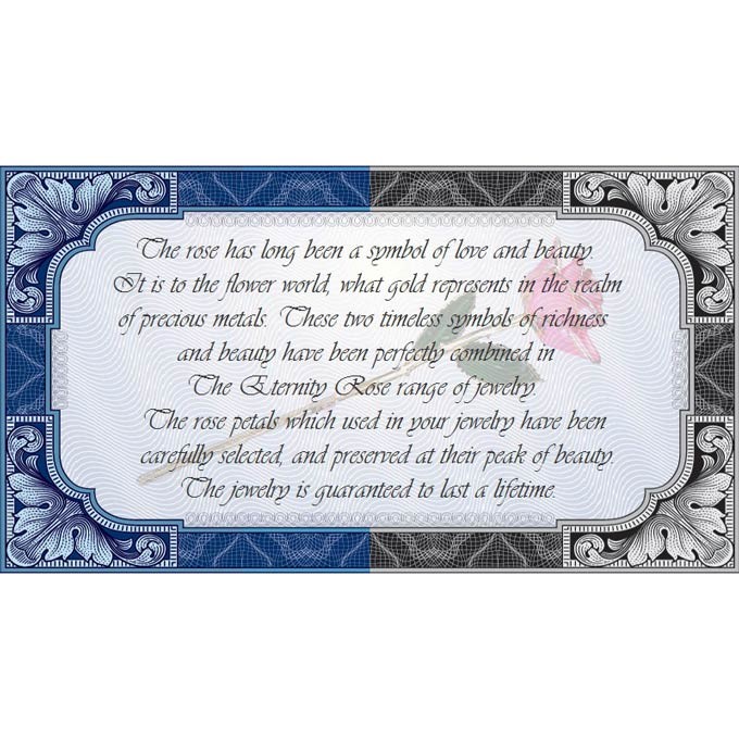 - Part of The Eternity Rose's exclusive range, each set has a guarantee of flawlessness, thanks to our rigorous quality control processes. No expense is spared to ensure our design is perfect so there is little wonder The Eternity Rose's jewelry collection has received awards for its quality and design.
